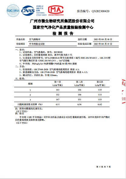 空氣消毒杯檢測報告